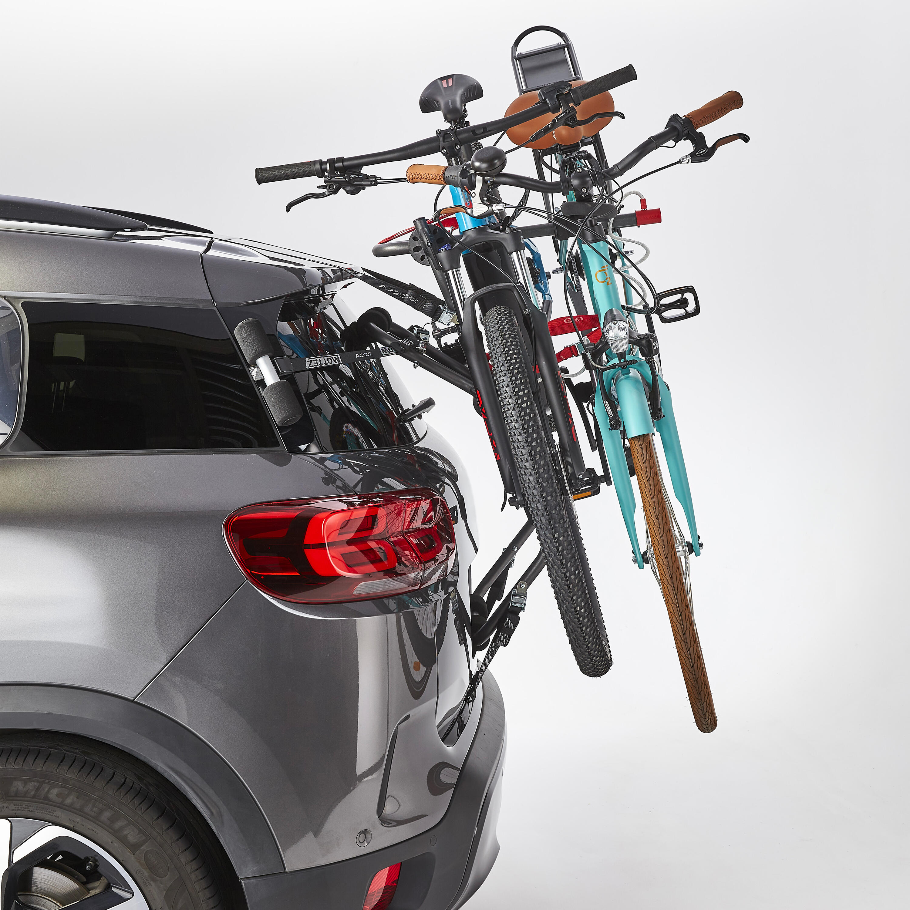 Certains modèles peuvent accepter jusqu'à 3 vélos. Le porte-vélos hayon est généralement utilisé pour des trajets courts (pas de visibilité arrière, accès au coffre condamné).