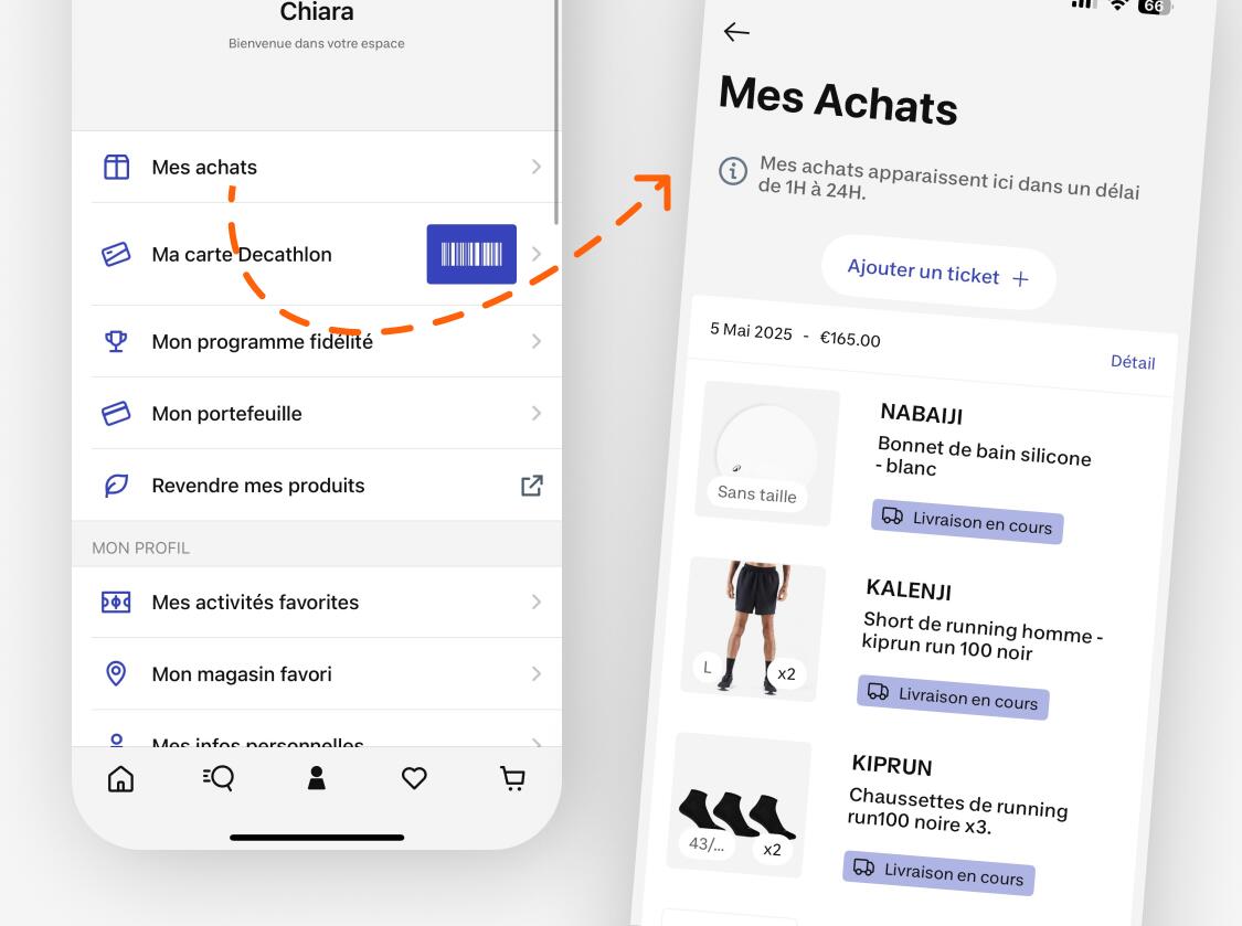 Fini de chercher vos tickets : retrouvez tous vos achats directement depuis l’appli. Pratique pour vos retours, garanties ou pour racheter vos articles préférés en un clic !